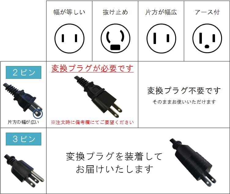 - 「3ピン」の商品はすべて変換プラグを装着してお届けいたします。